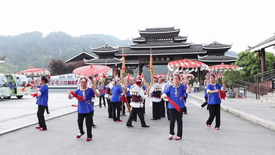 芦笙村头响,侗家迎客忙。在位于广西柳州市三江侗族自治县的程阳八寨,侗族的阿哥阿妹身着民族盛装,吹着芦笙,跳起踩堂舞,迎接八方游客的到来。