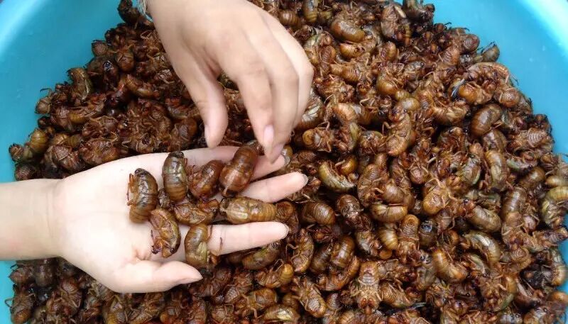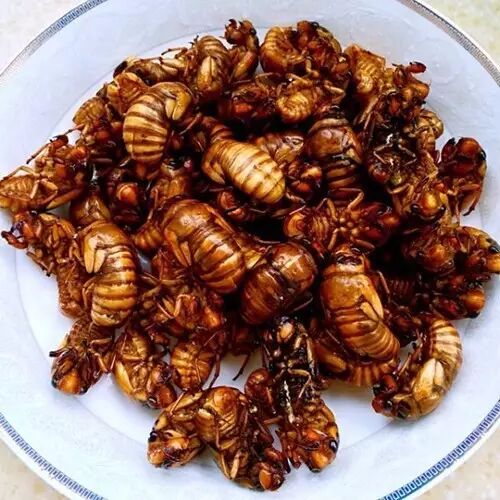 酱婶:油炸知了猴。炸过以后香香脆脆的,不过长大以后反而不敢吃了。