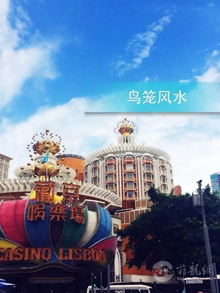 座落在澳门南湾畔的萄京赌场,其形状如一个大鸟笼,整个建筑群前为鸟笼,后靠为方形建筑物,在鸟笼顶部有一个圆形物体,「刀状」的利器围满一圈,刺向四面八方,寓意万箭齐发,大杀「四方」。