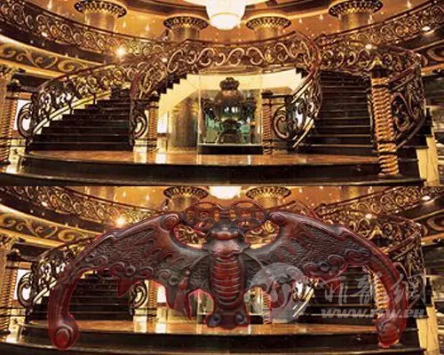 ▲进入大堂楼梯如蝙蝠设计,又阔到窄,将金钱慢慢吸纳,蝙蝠福鼠吊金钱。